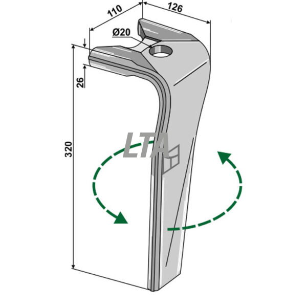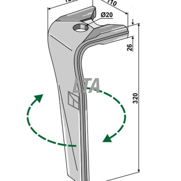 Rotorharvetand venstre til Kuhn 1 hul (52596510)